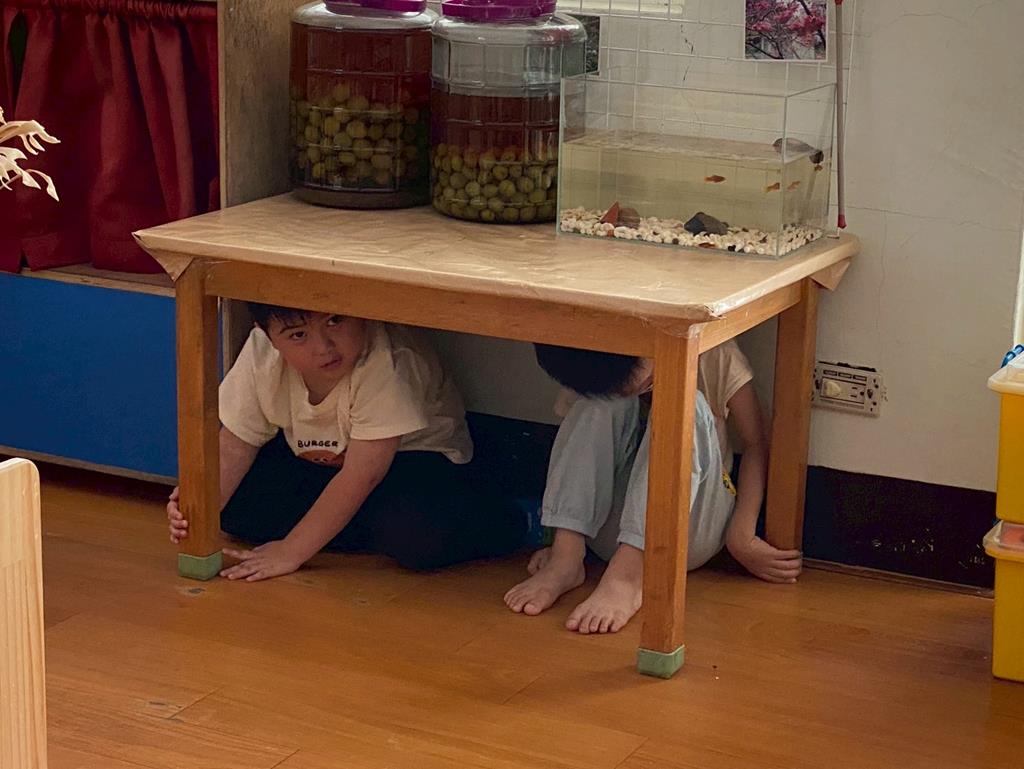 防震防災宣導-趴下、掩護、穩住